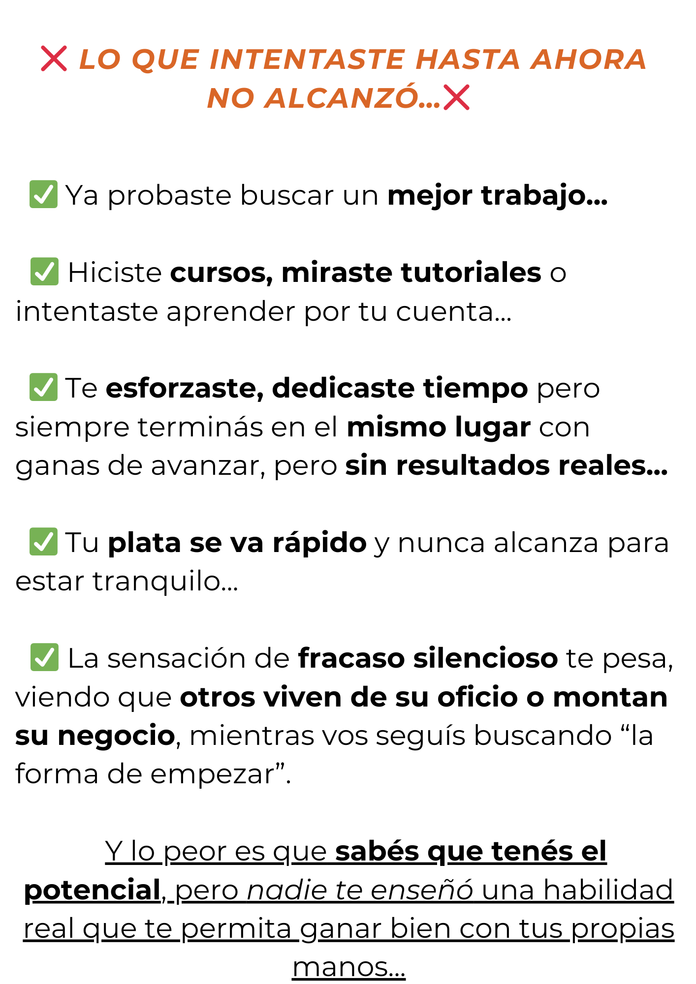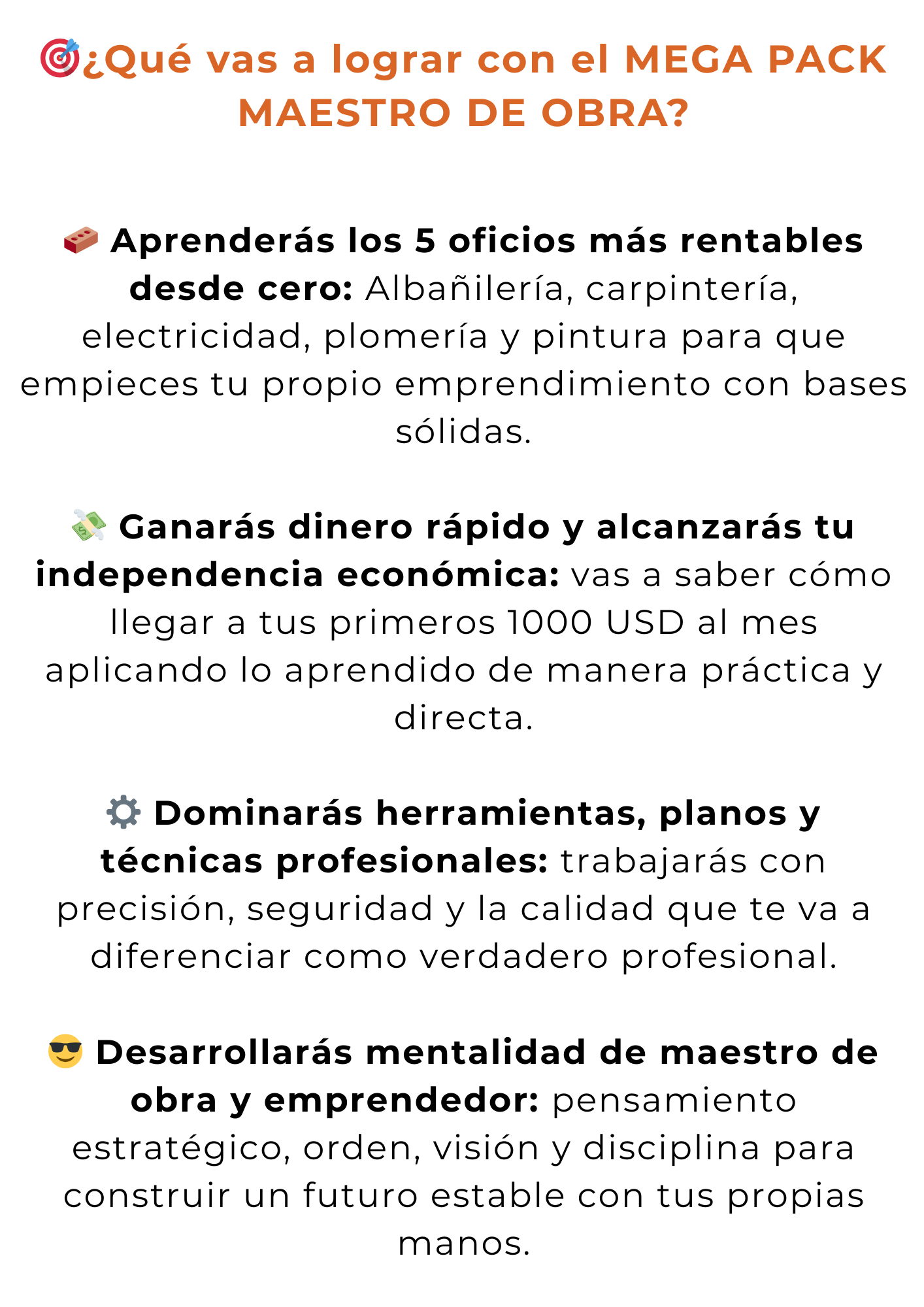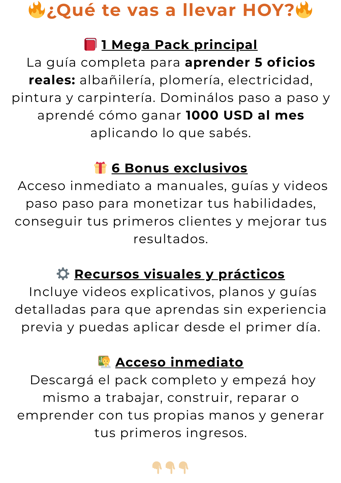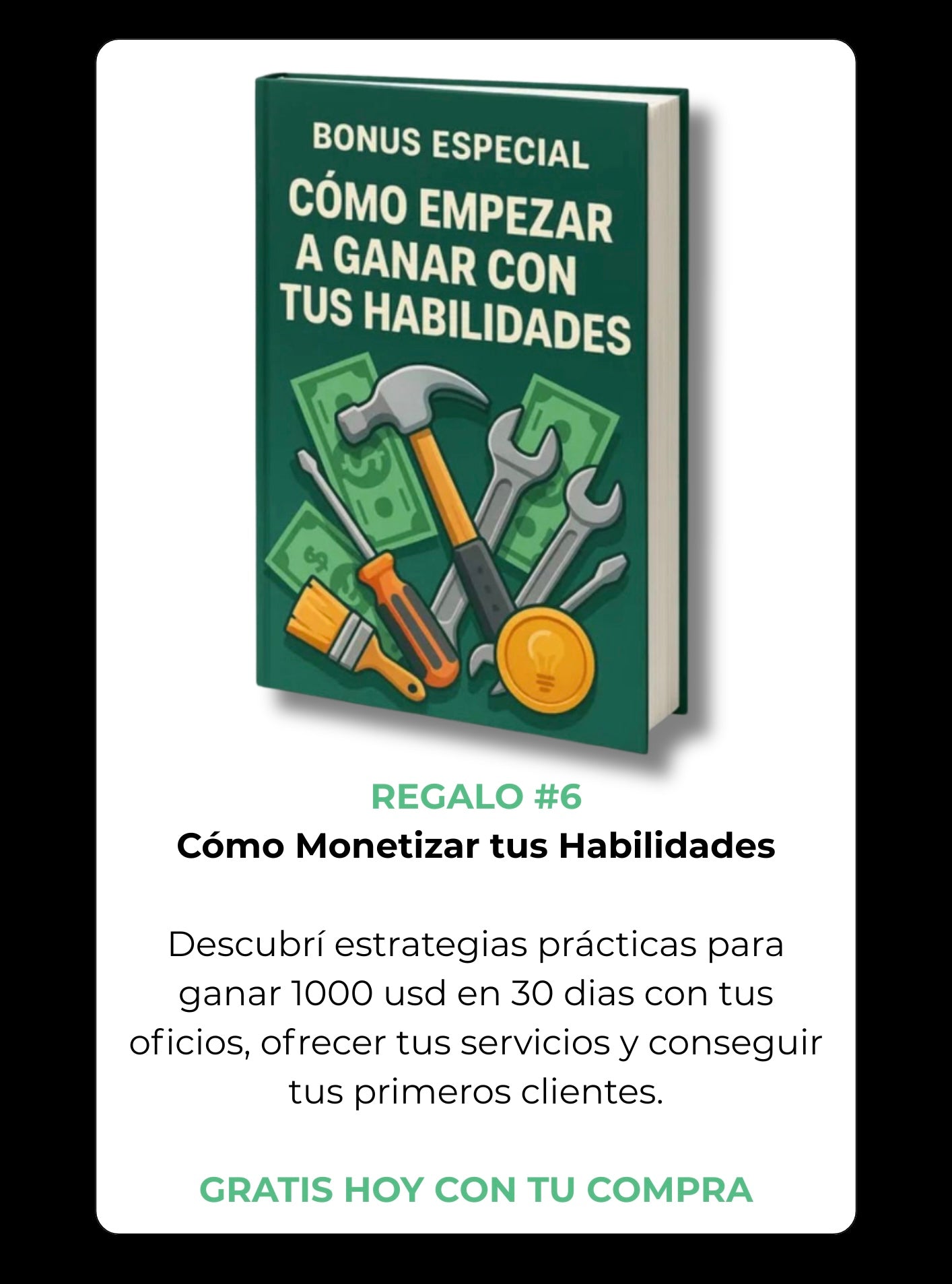 🚀 Un curso tradicional de un solo oficio puede costar entre $50.000 y $120.000. Con este Pack aprendés 5 oficios completos + 6 bonos por una fracción de